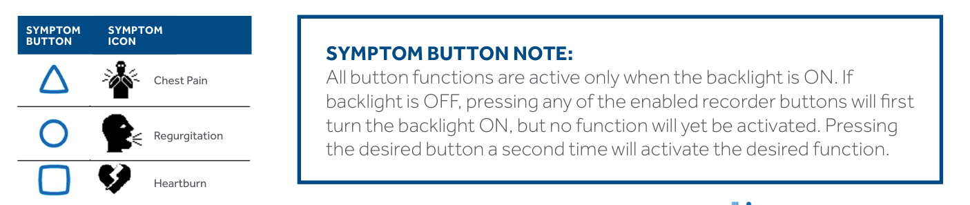- Please use the symptom buttons on the recorder to record your symptoms during the testing period: